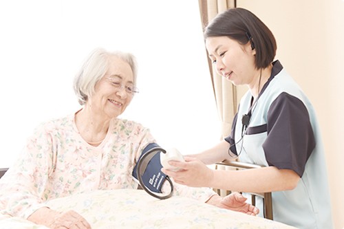 看護職員は日中365日常勤しており、毎日の血圧・体温の測定などのバイタルチェック、感染症の予防など、ご入居者さまの健康管理を行います。